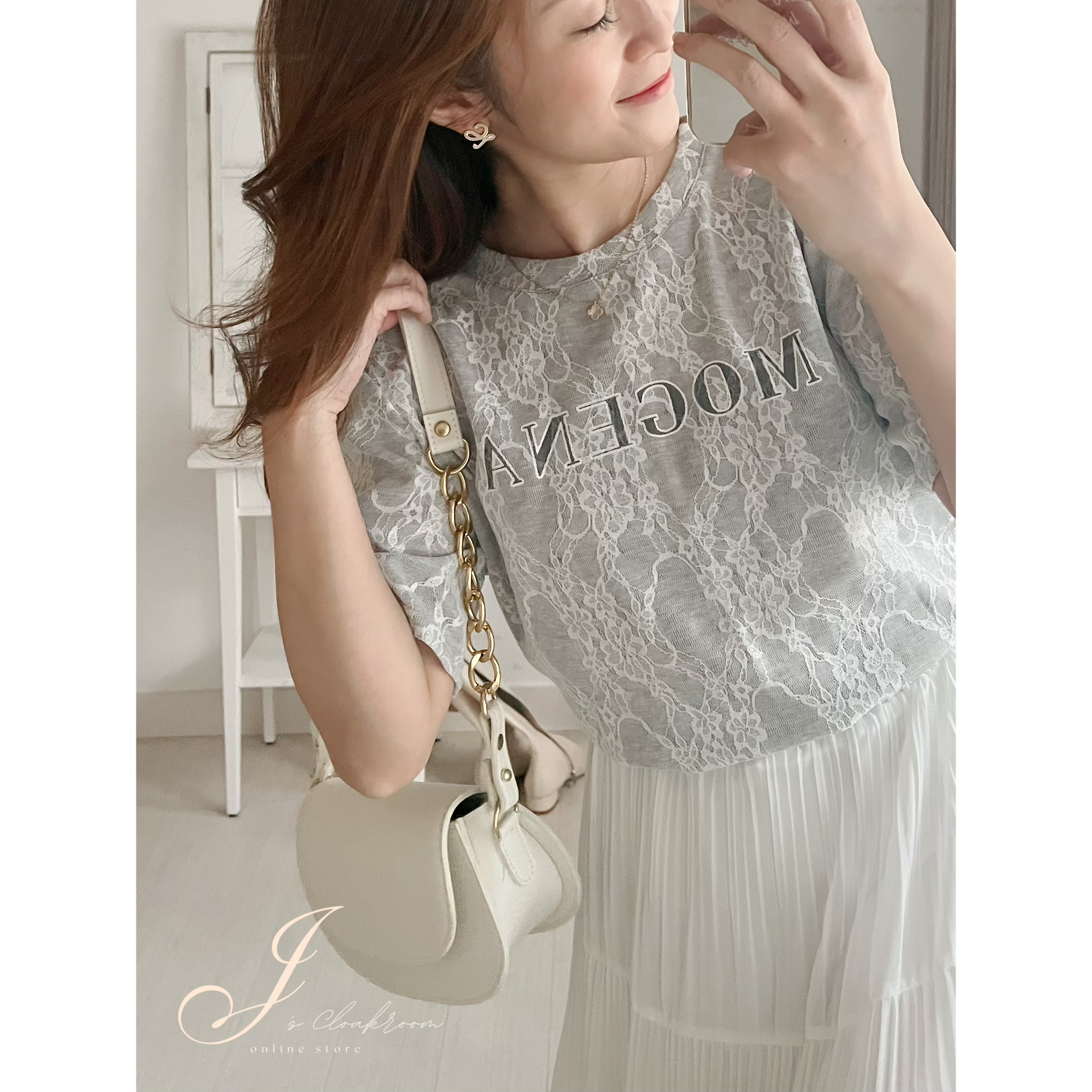 Super Soft 溫柔蕾絲字母Tee (KR)[淺灰色]231464