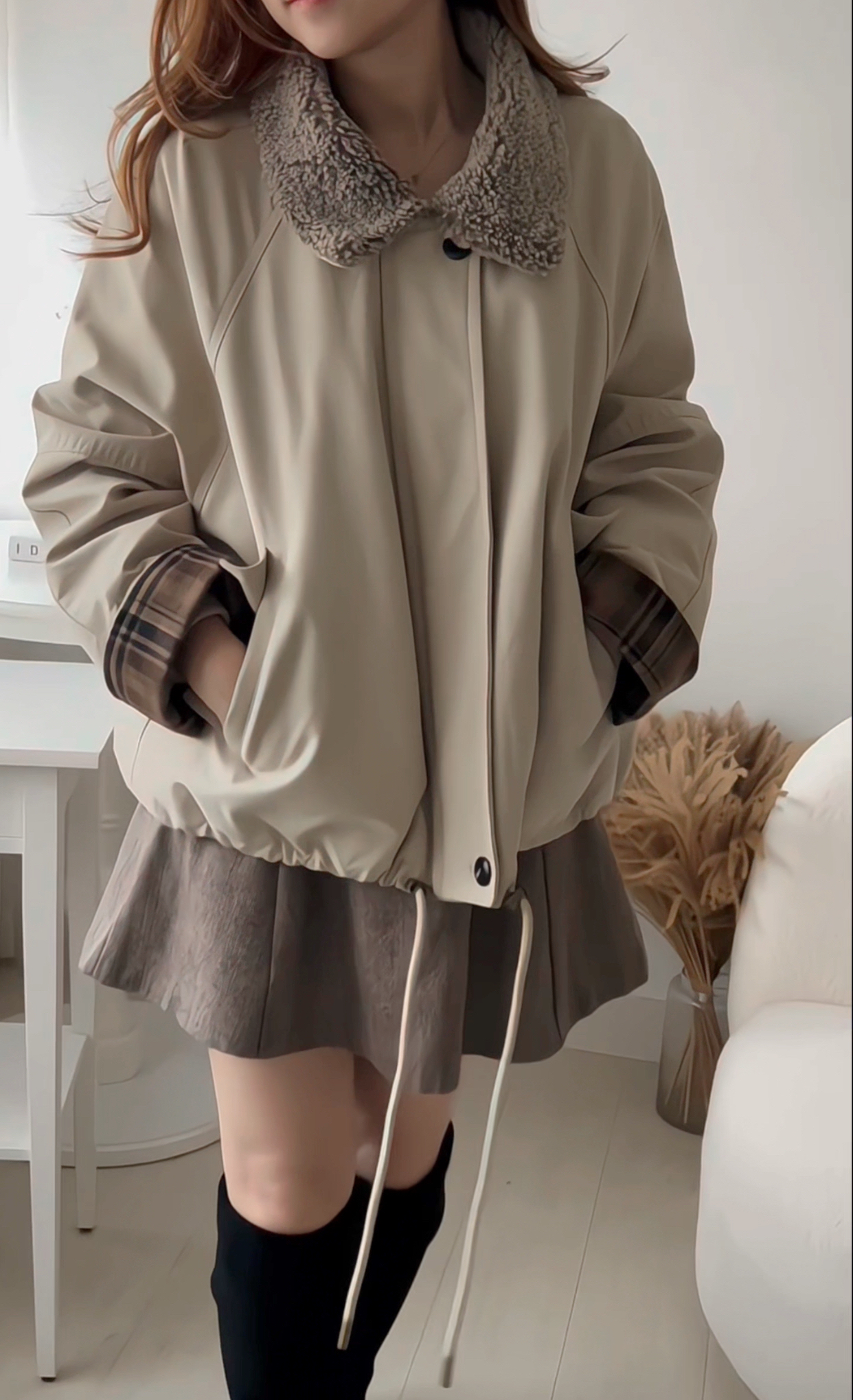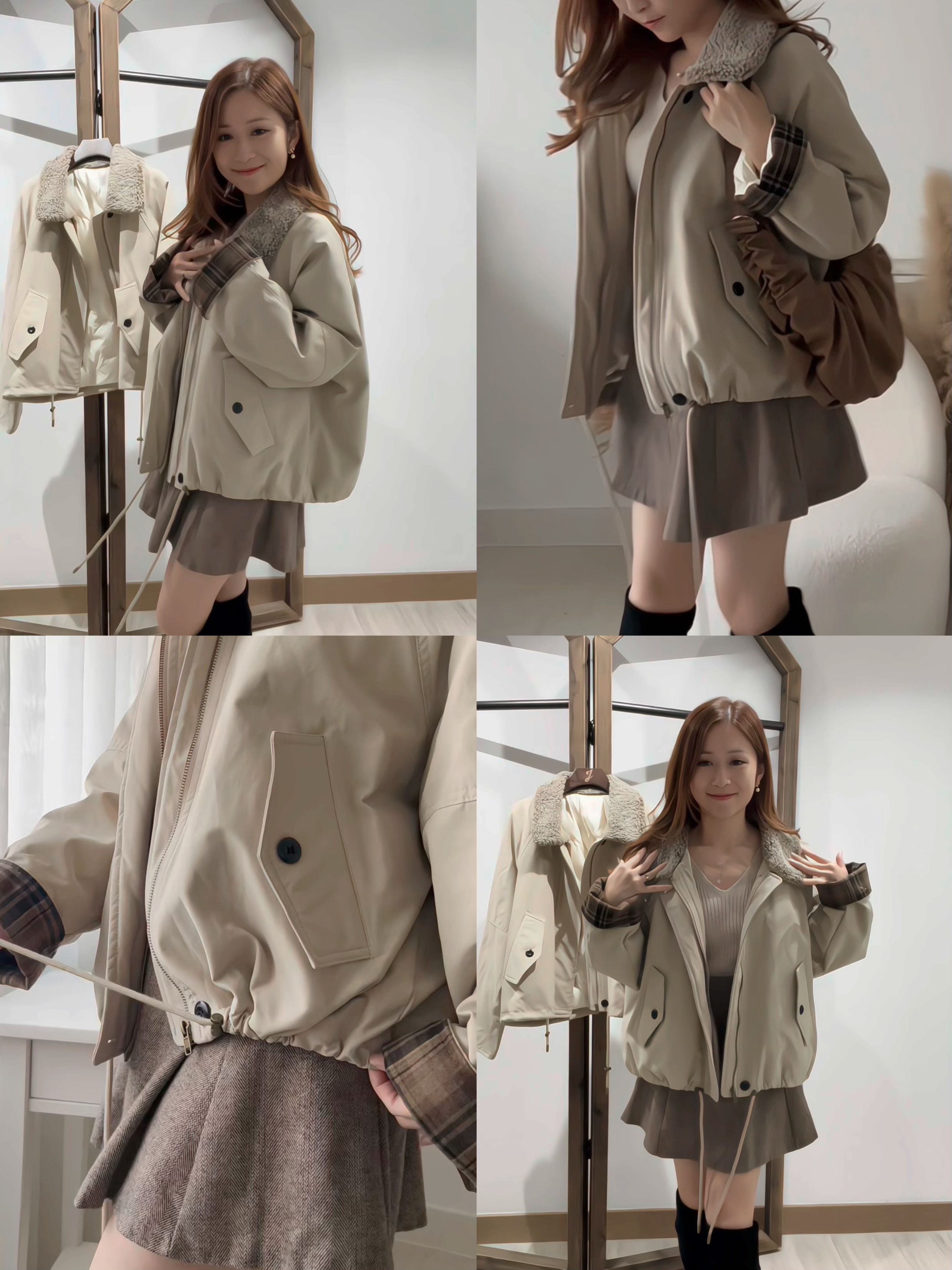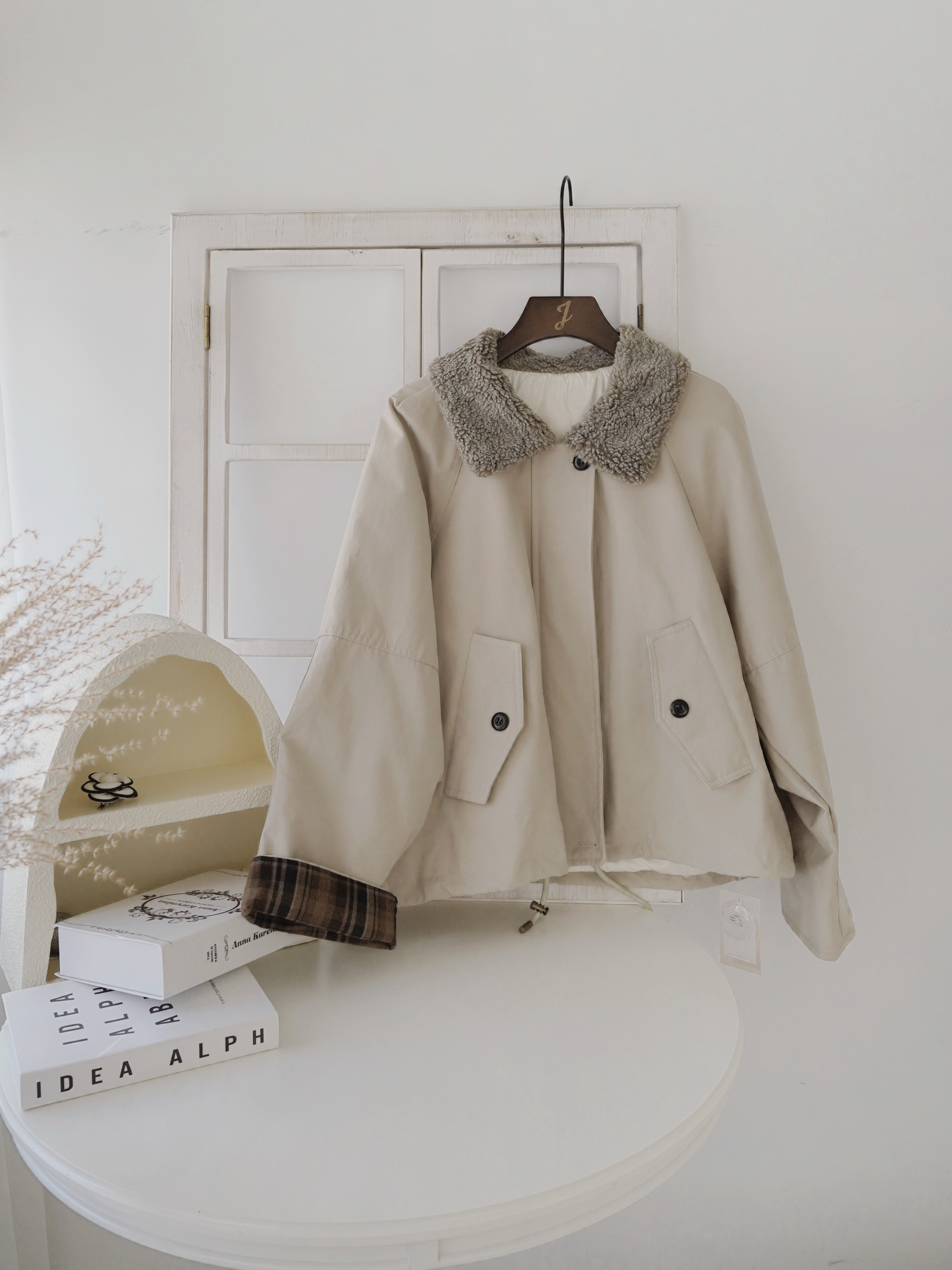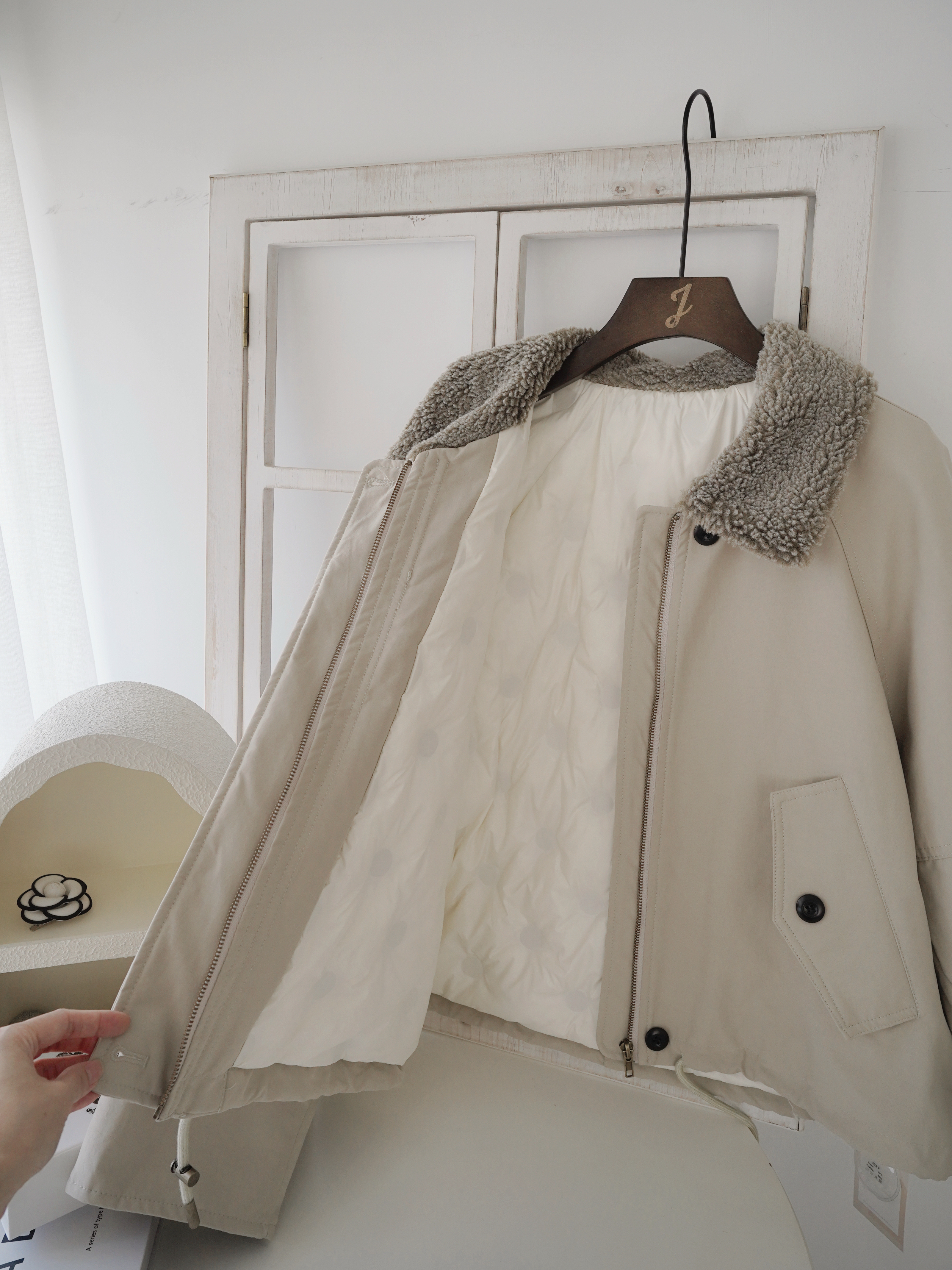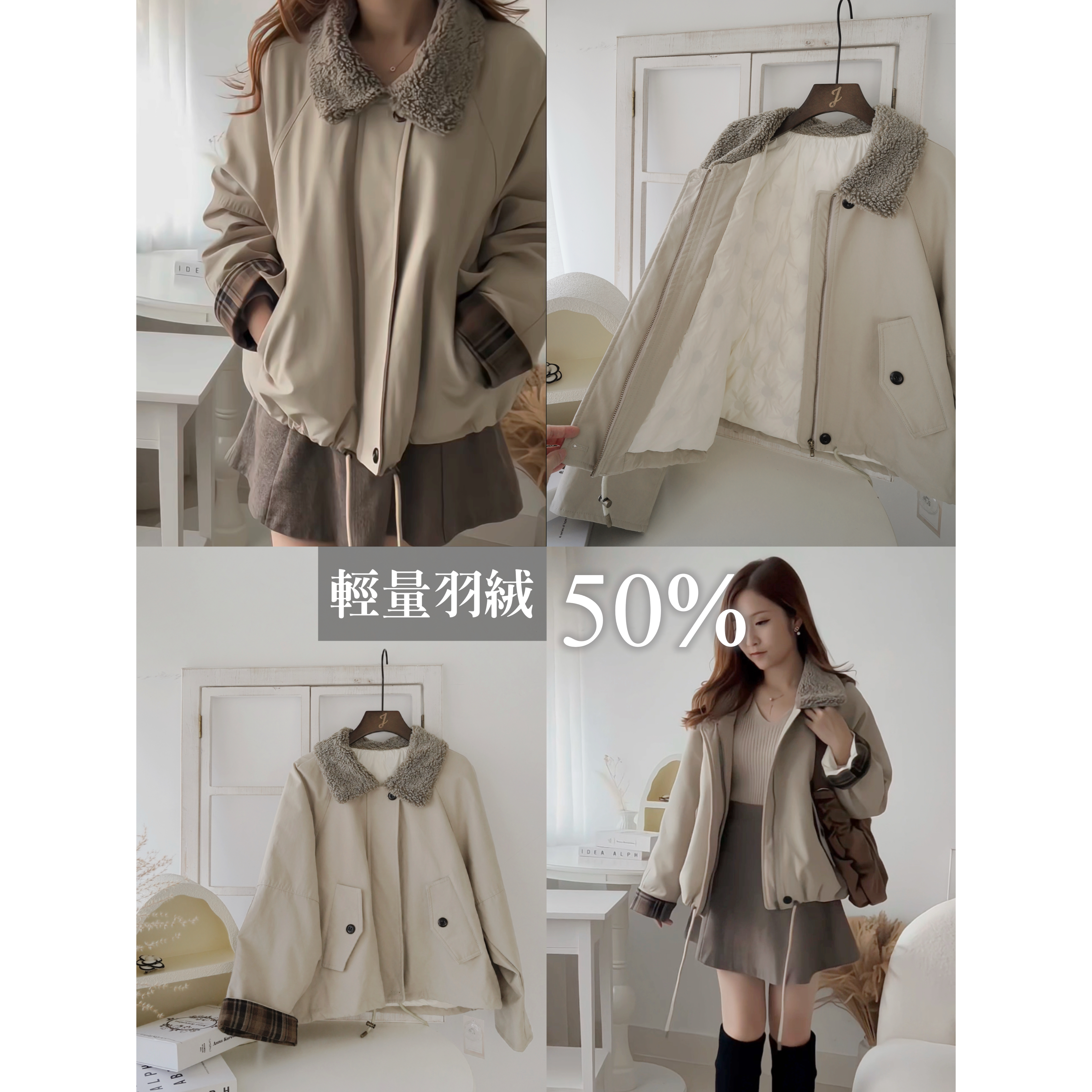 [限時閃購]毛絨翻領輕量羽絨(KR)[杏茶色]