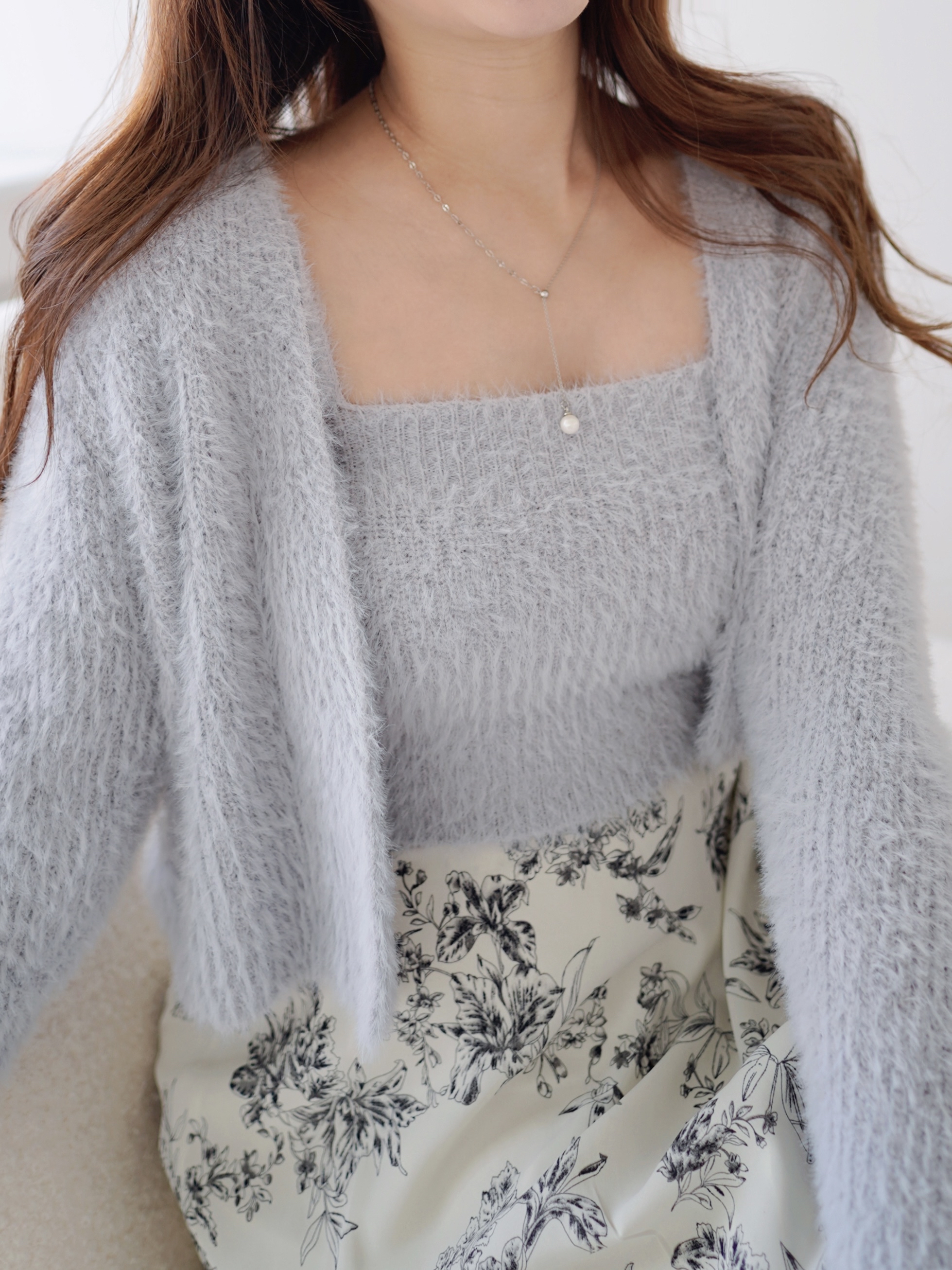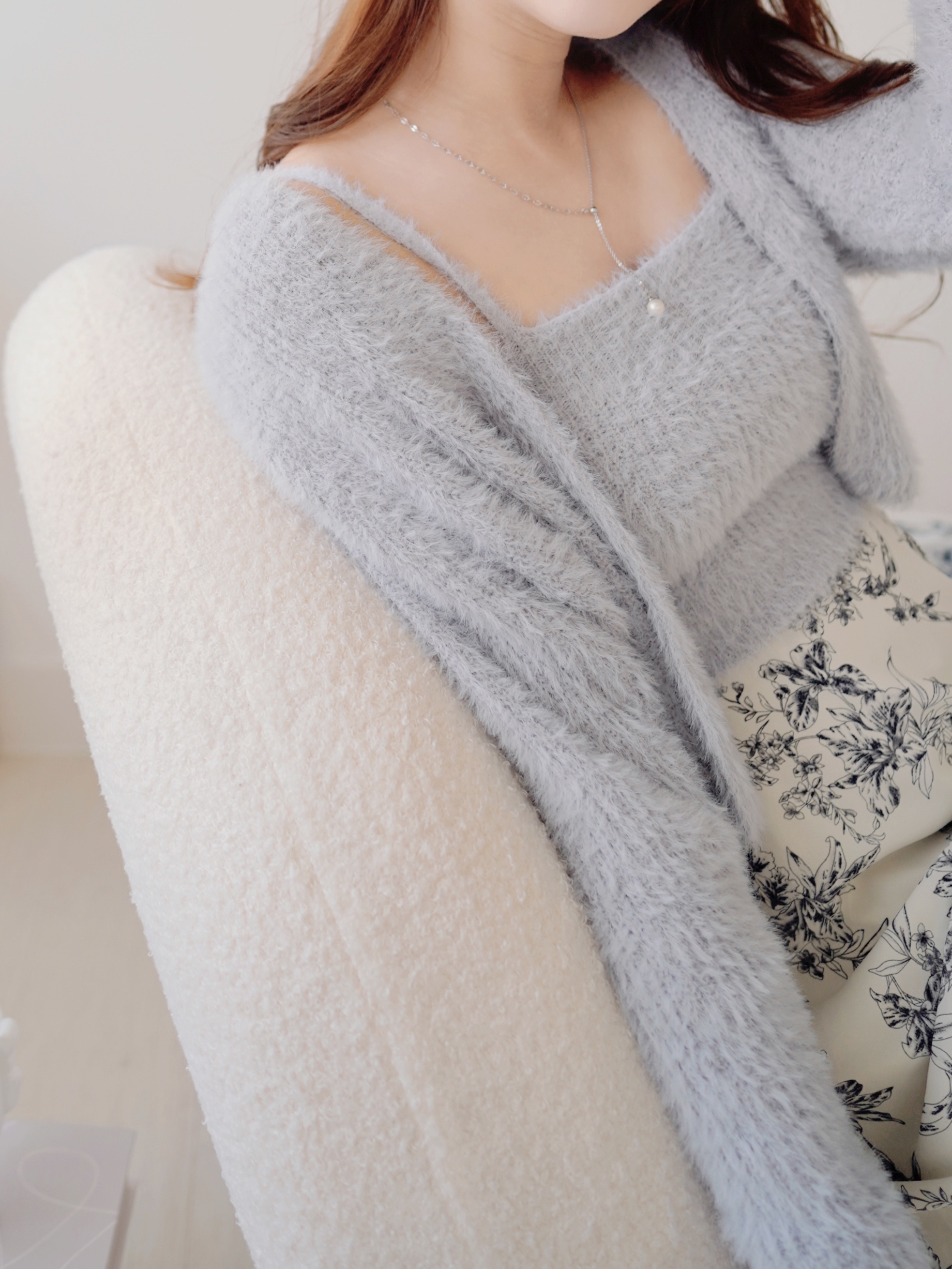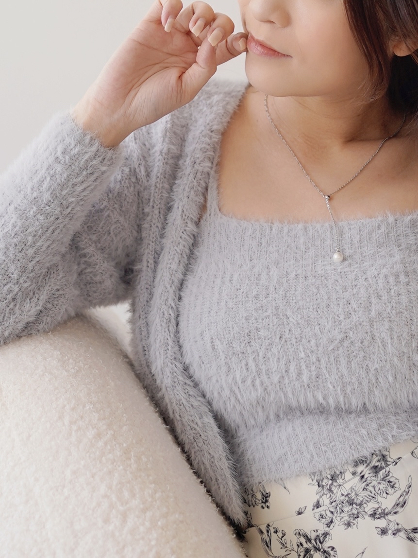 【加厚版】軟綿綿毛毛套裝(吊帶+外套)(KR)[灰藍色]101017