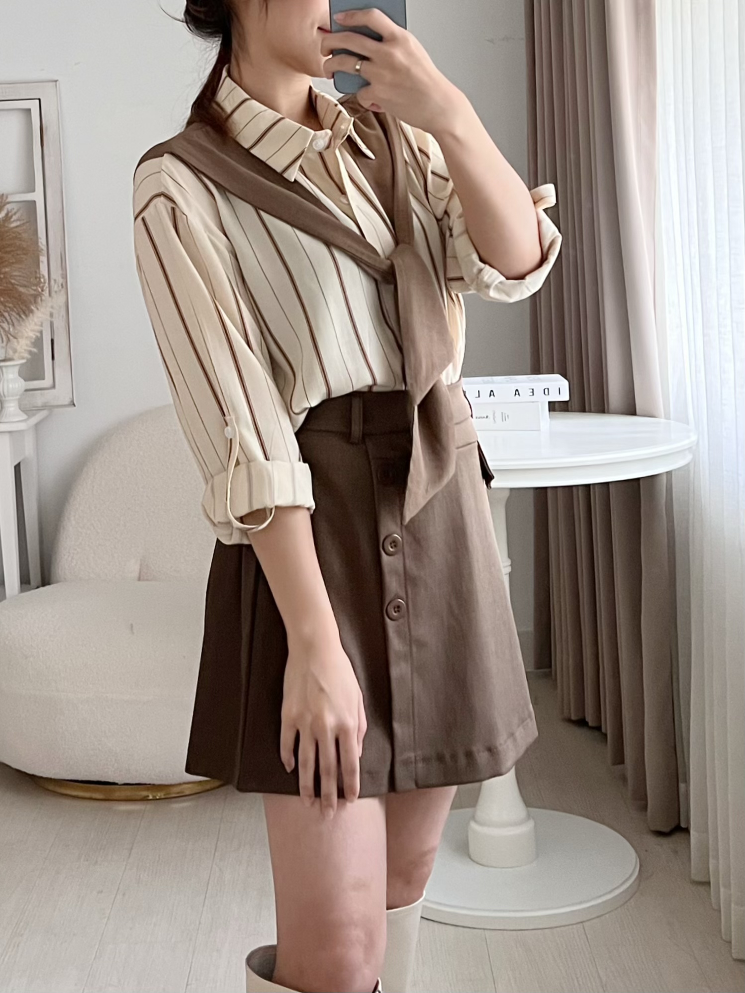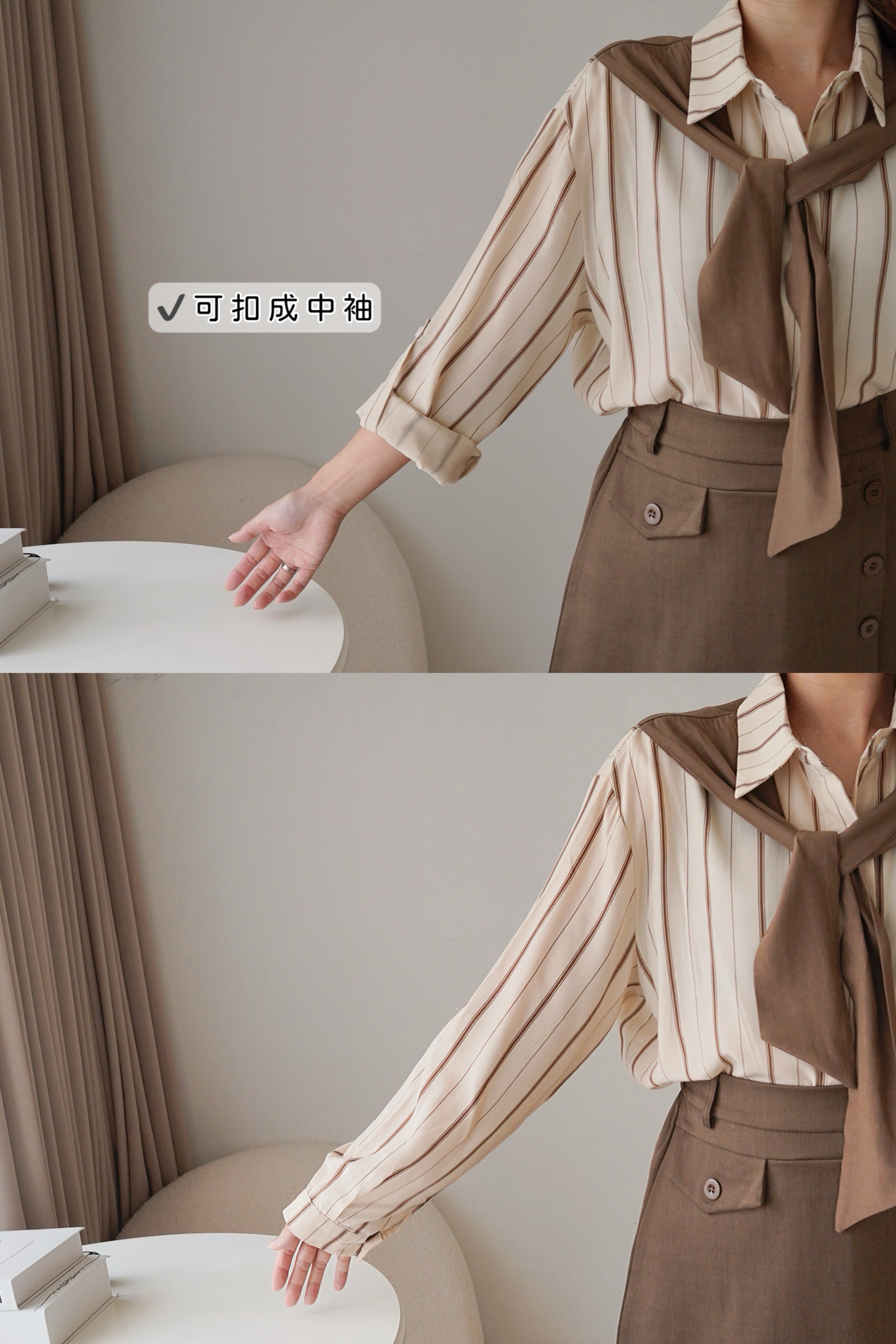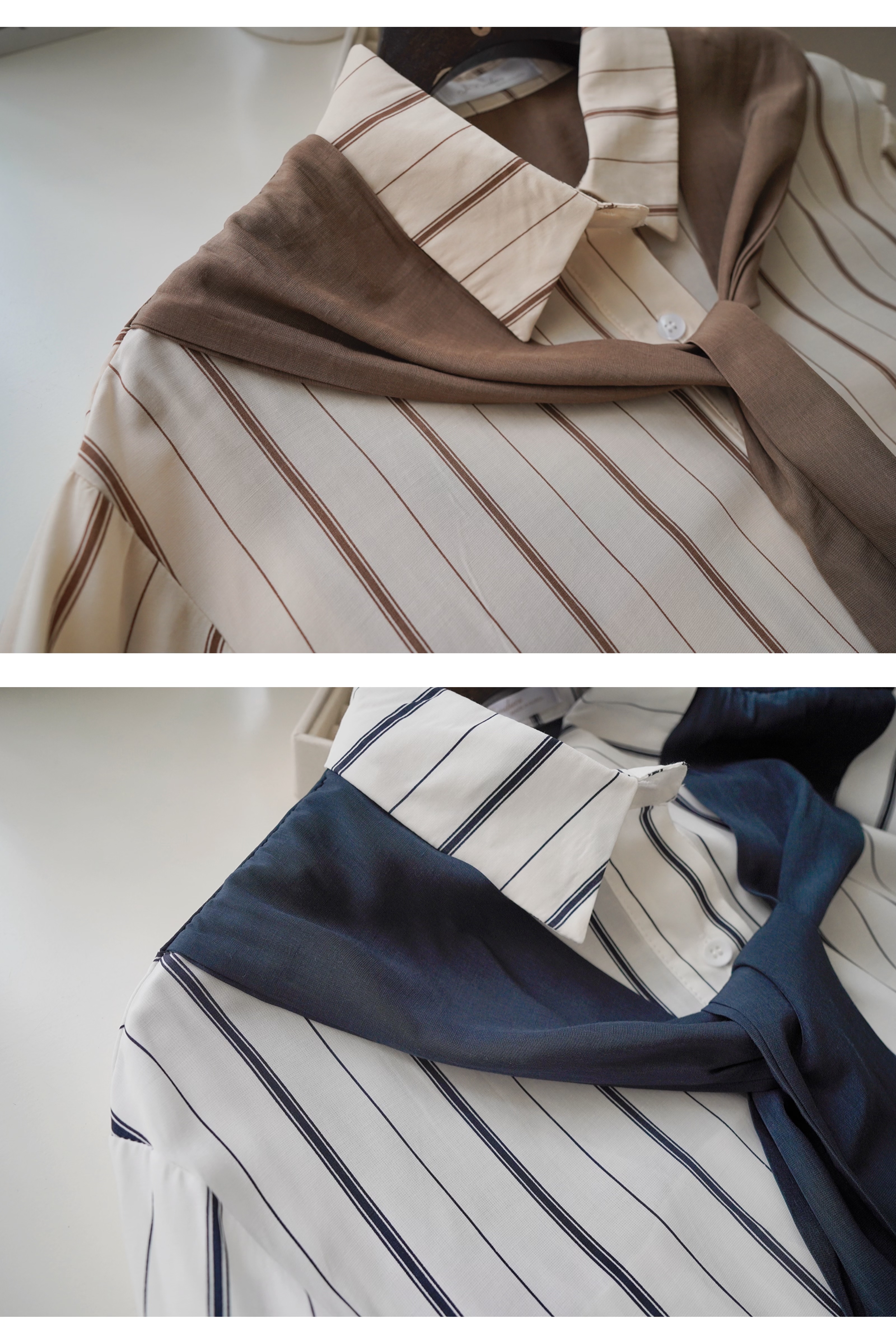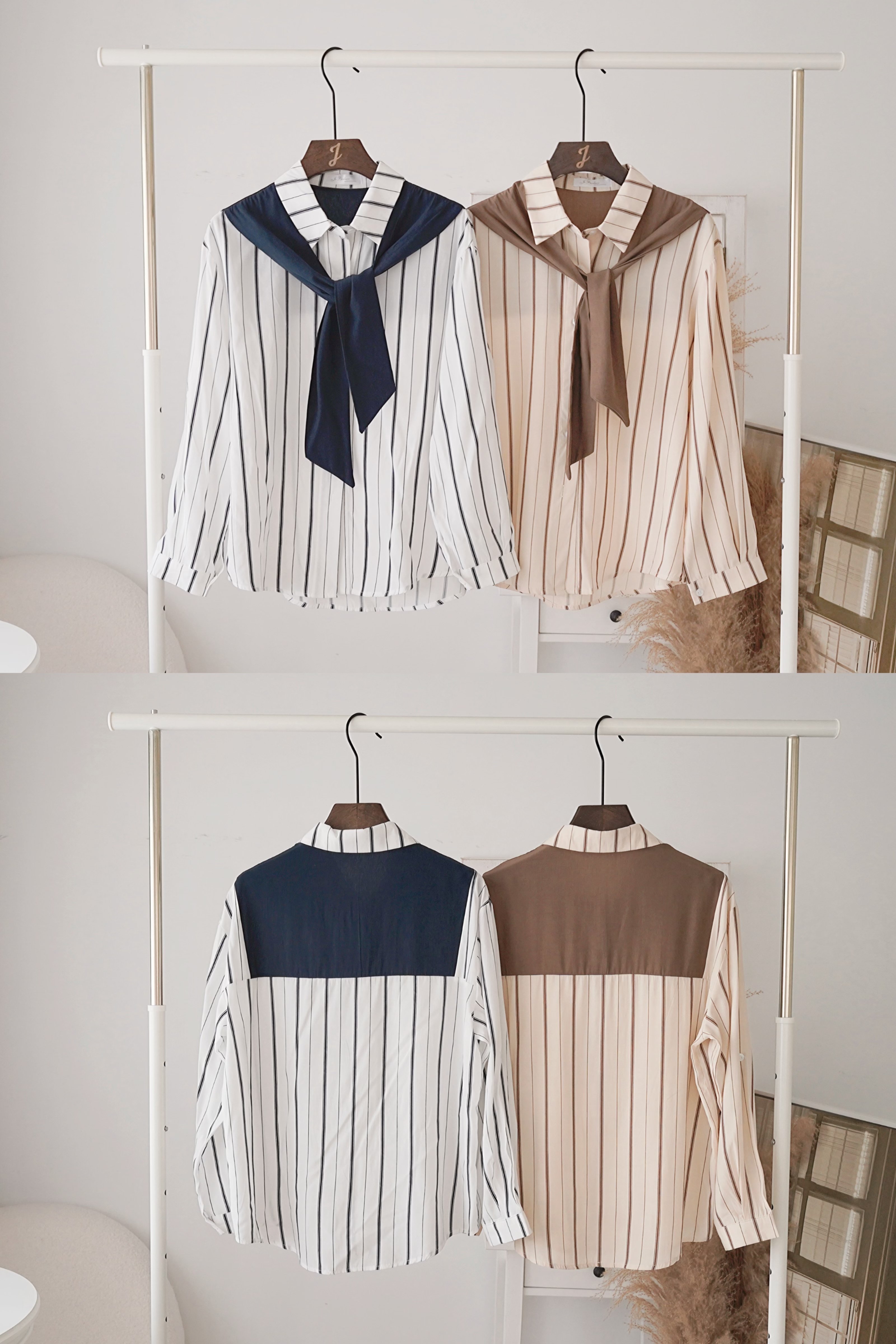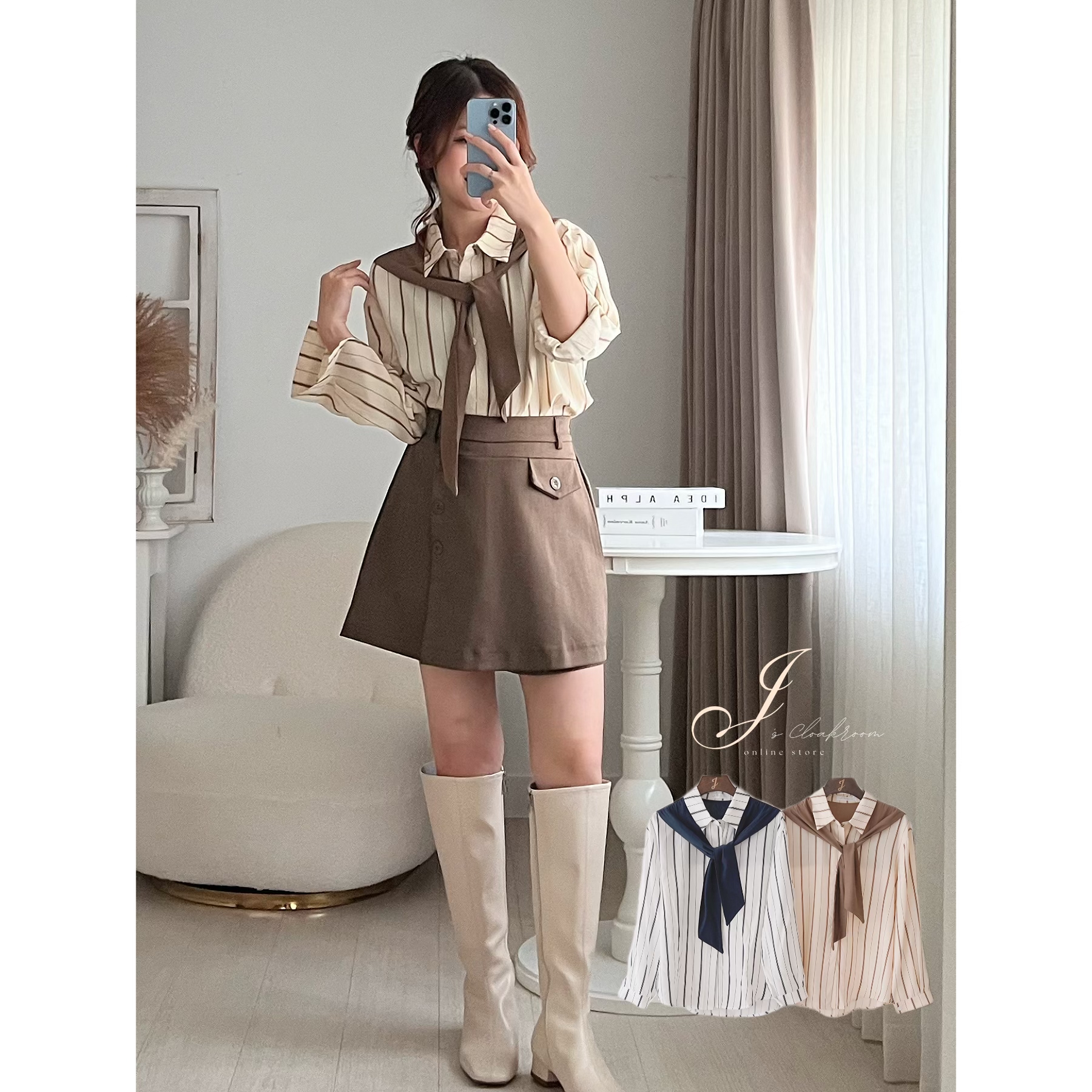 假披肩條紋襯衫(KR)[杏啡色]768093