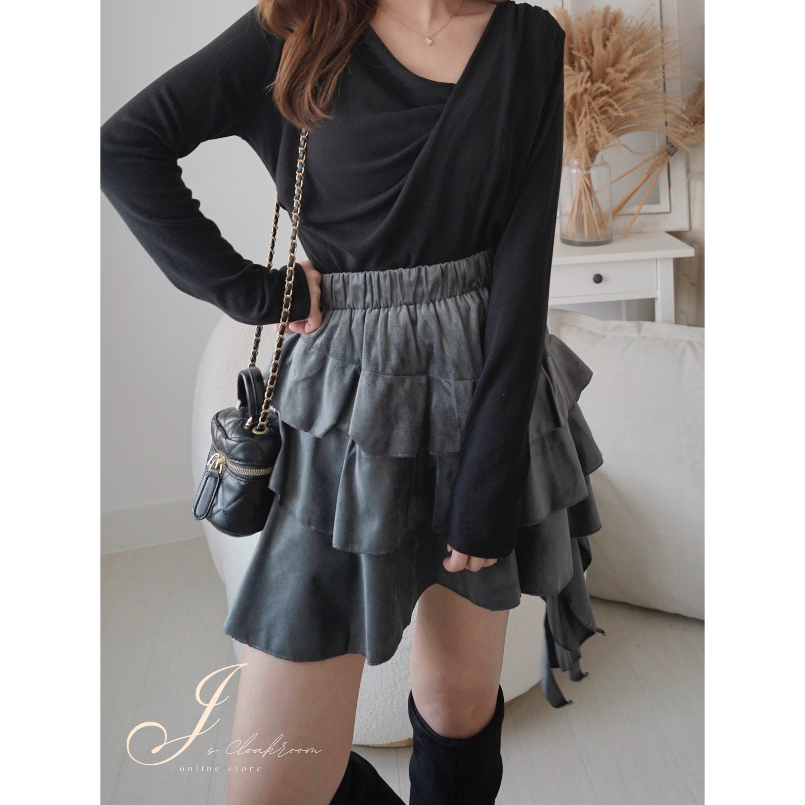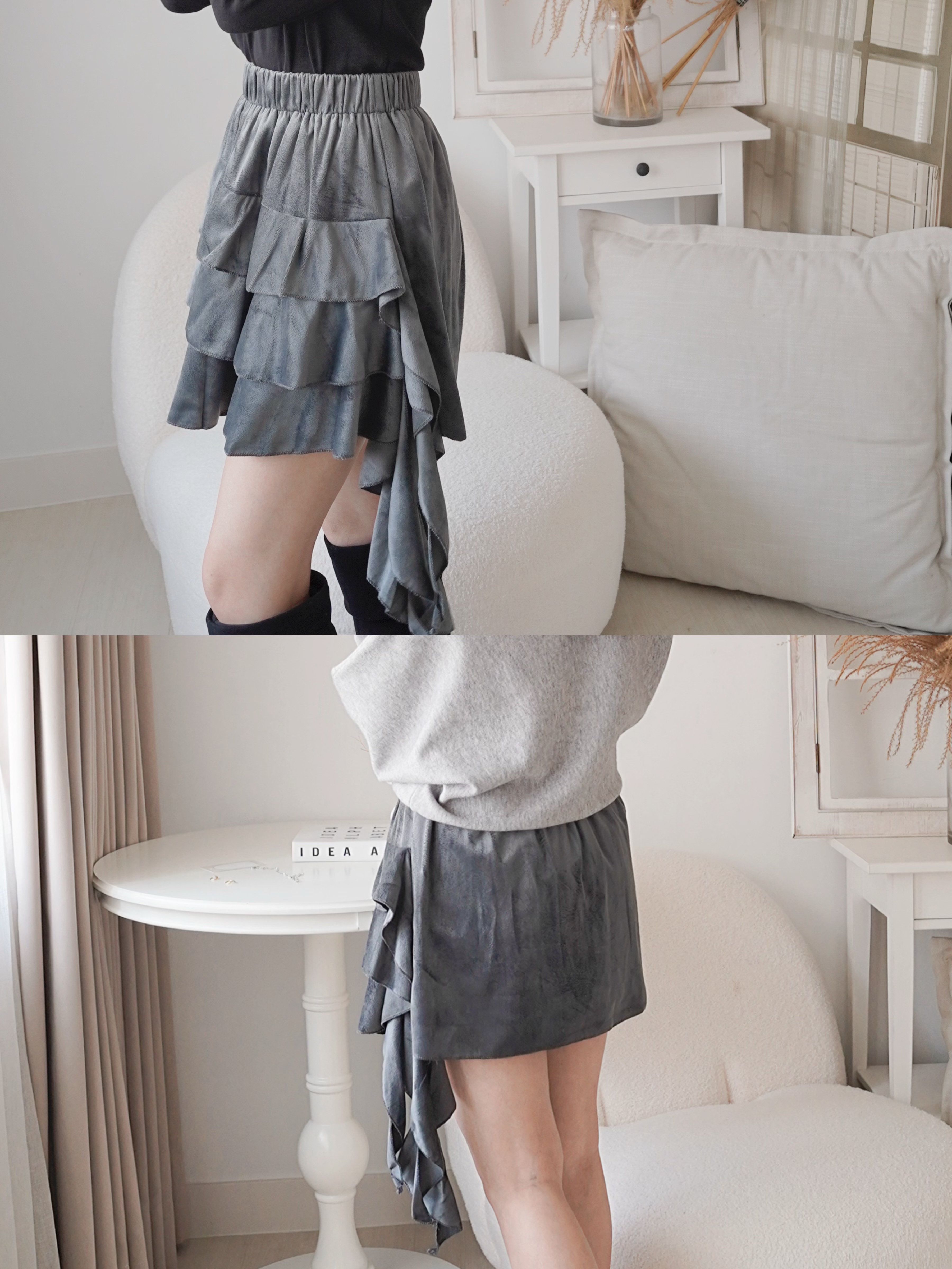 <限時>啞面絨料蛋糕短裙(KR)[灰色]178094