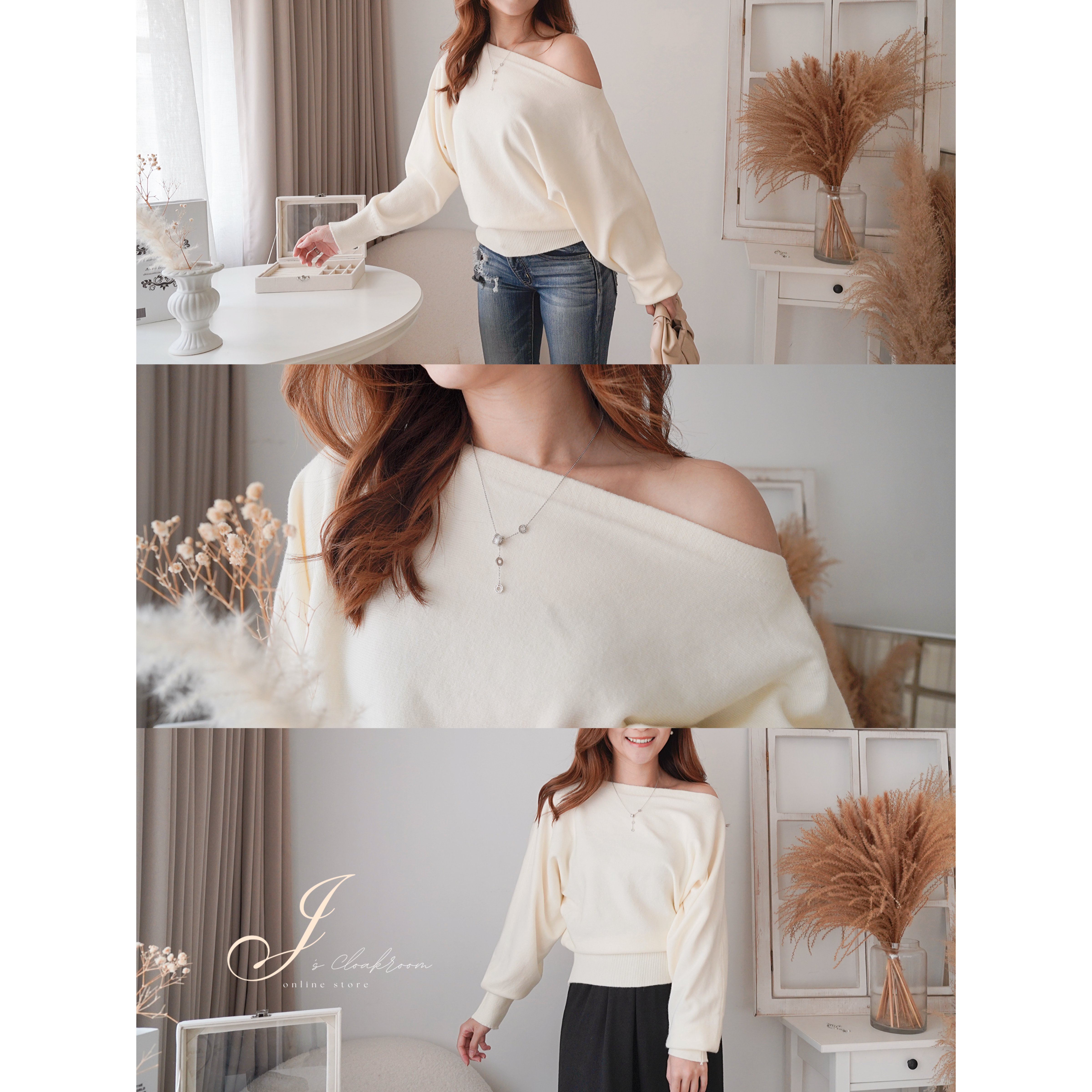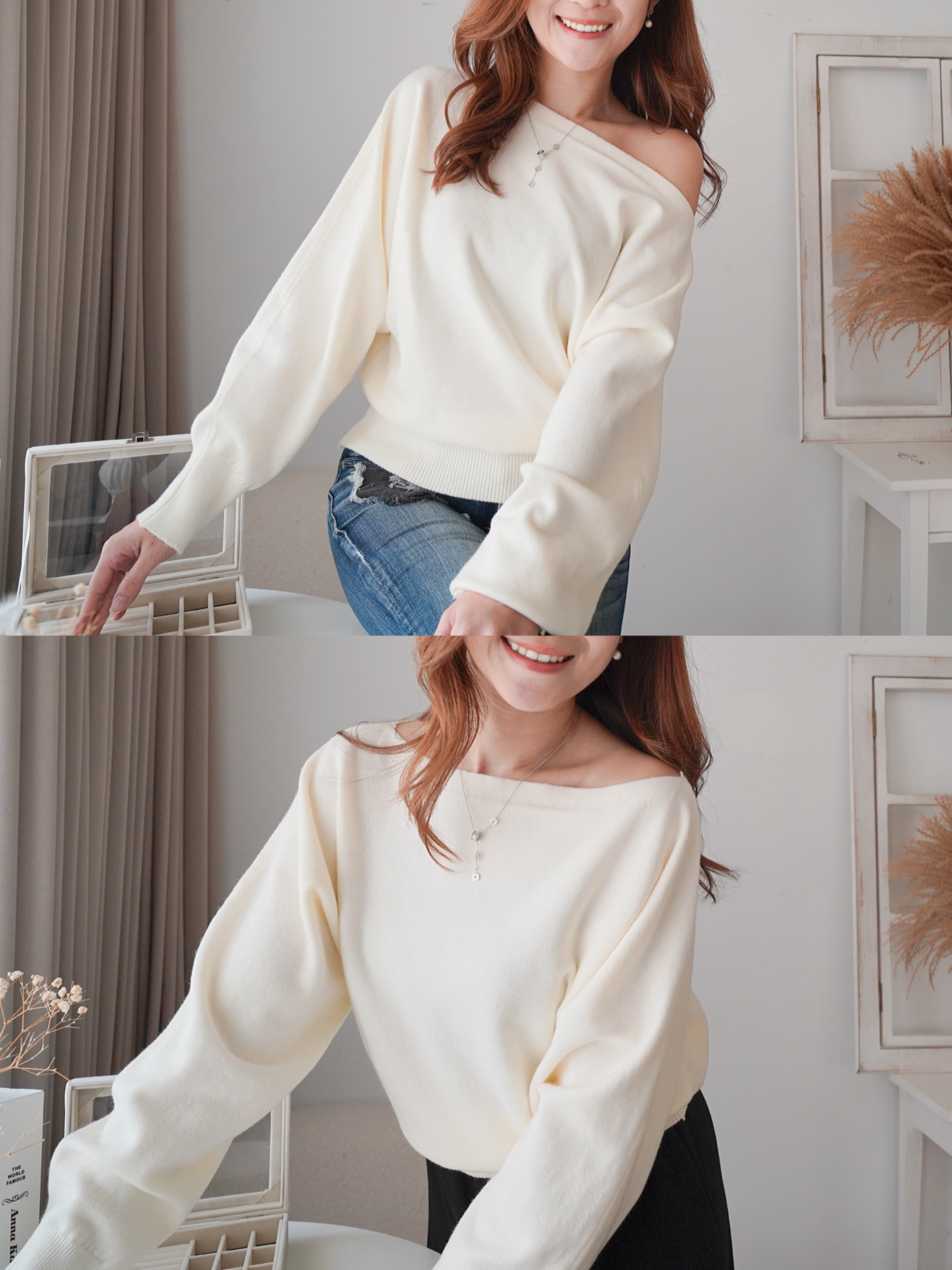 小寬領蝙蝠袖2-WAY上衣(KR)[奶油色]662710