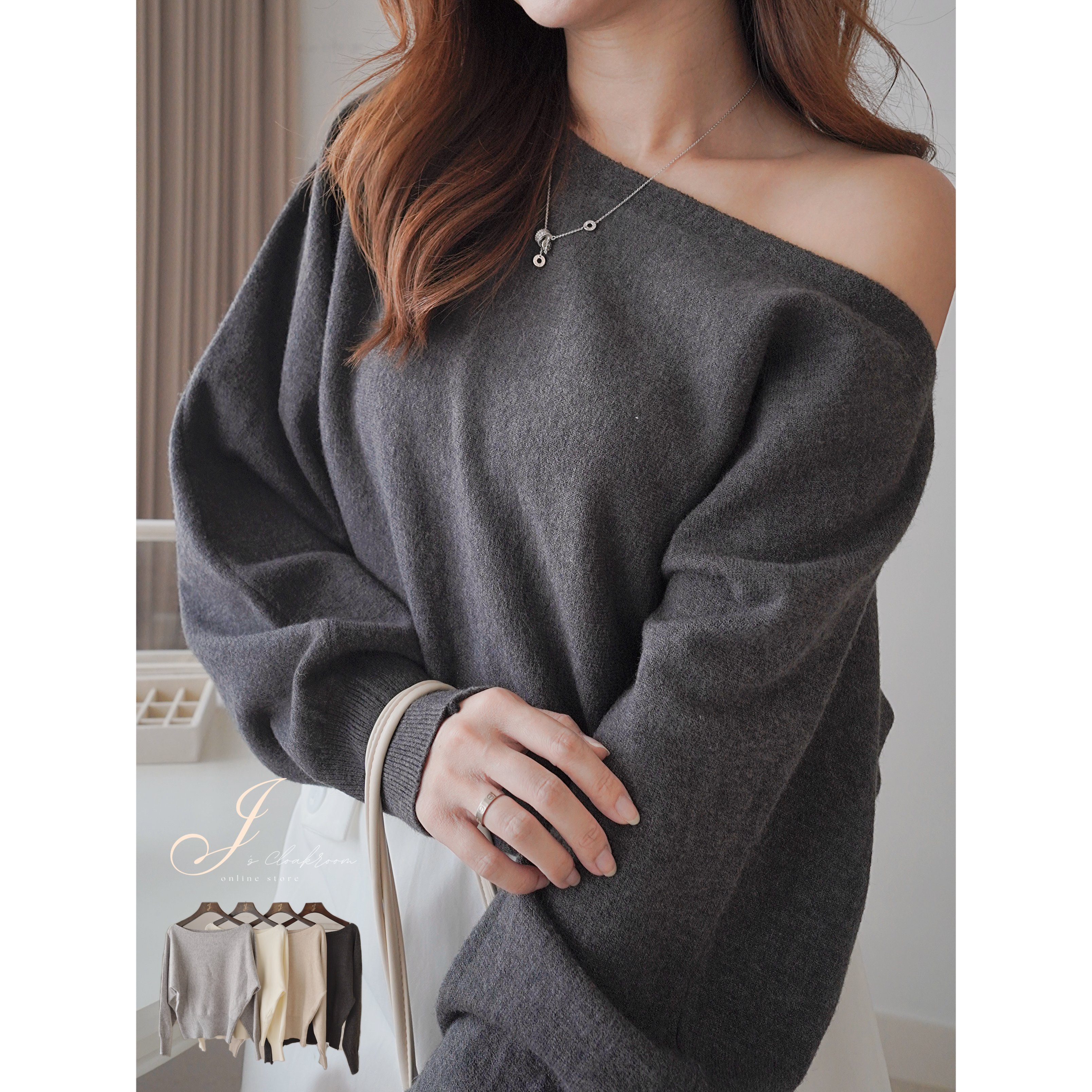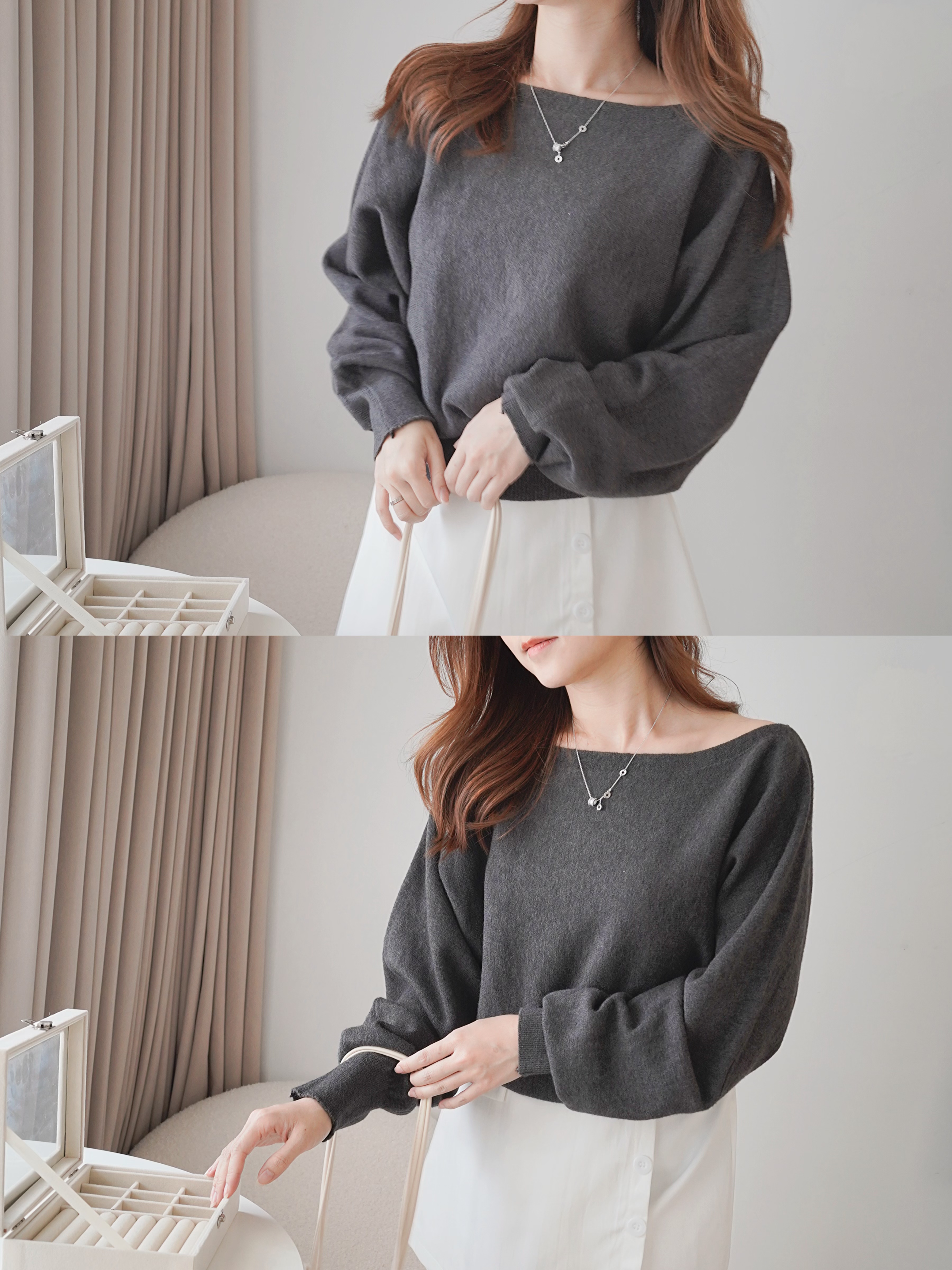 小寬領蝙蝠袖2-WAY上衣(KR)[深灰色]662710