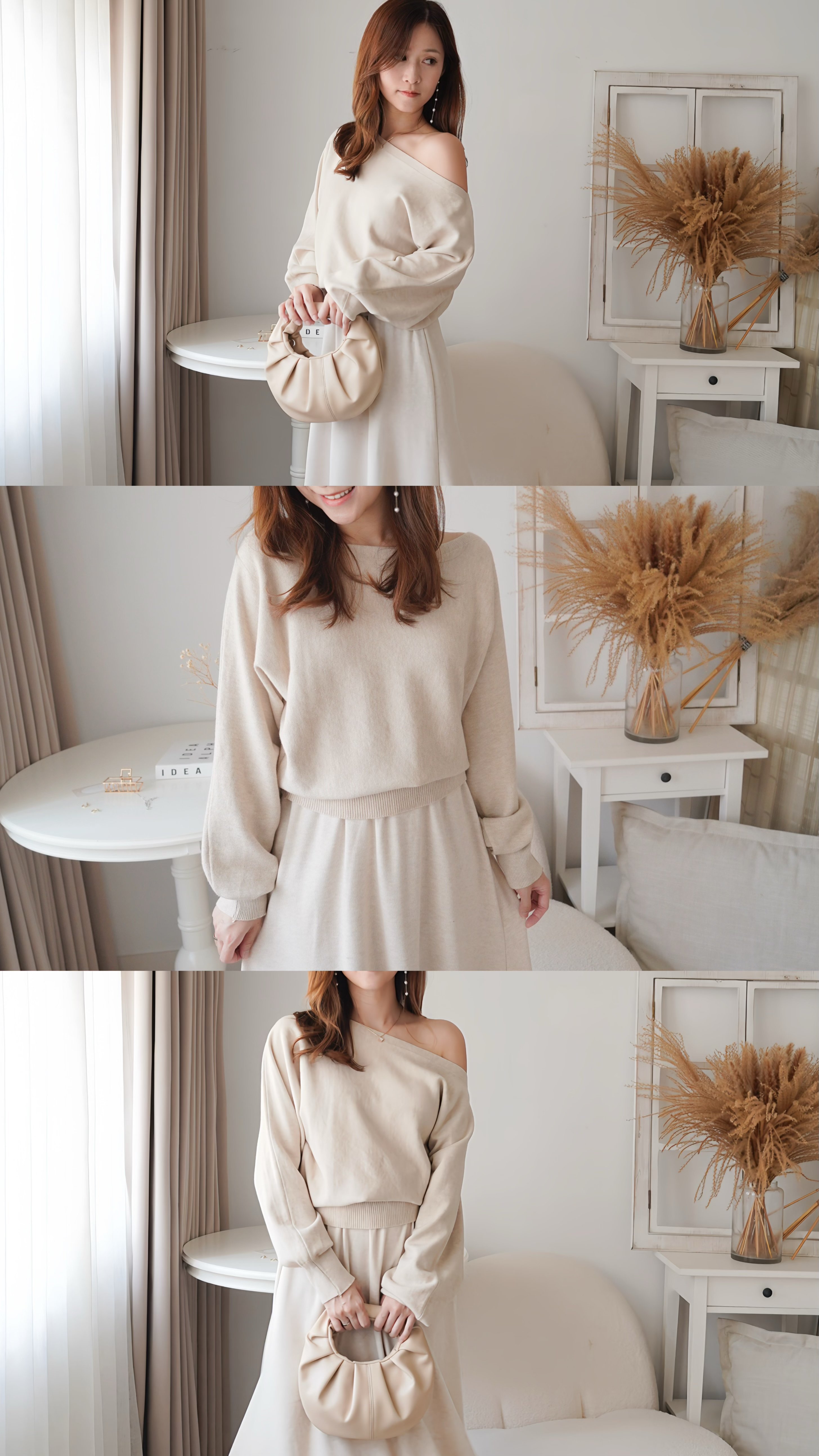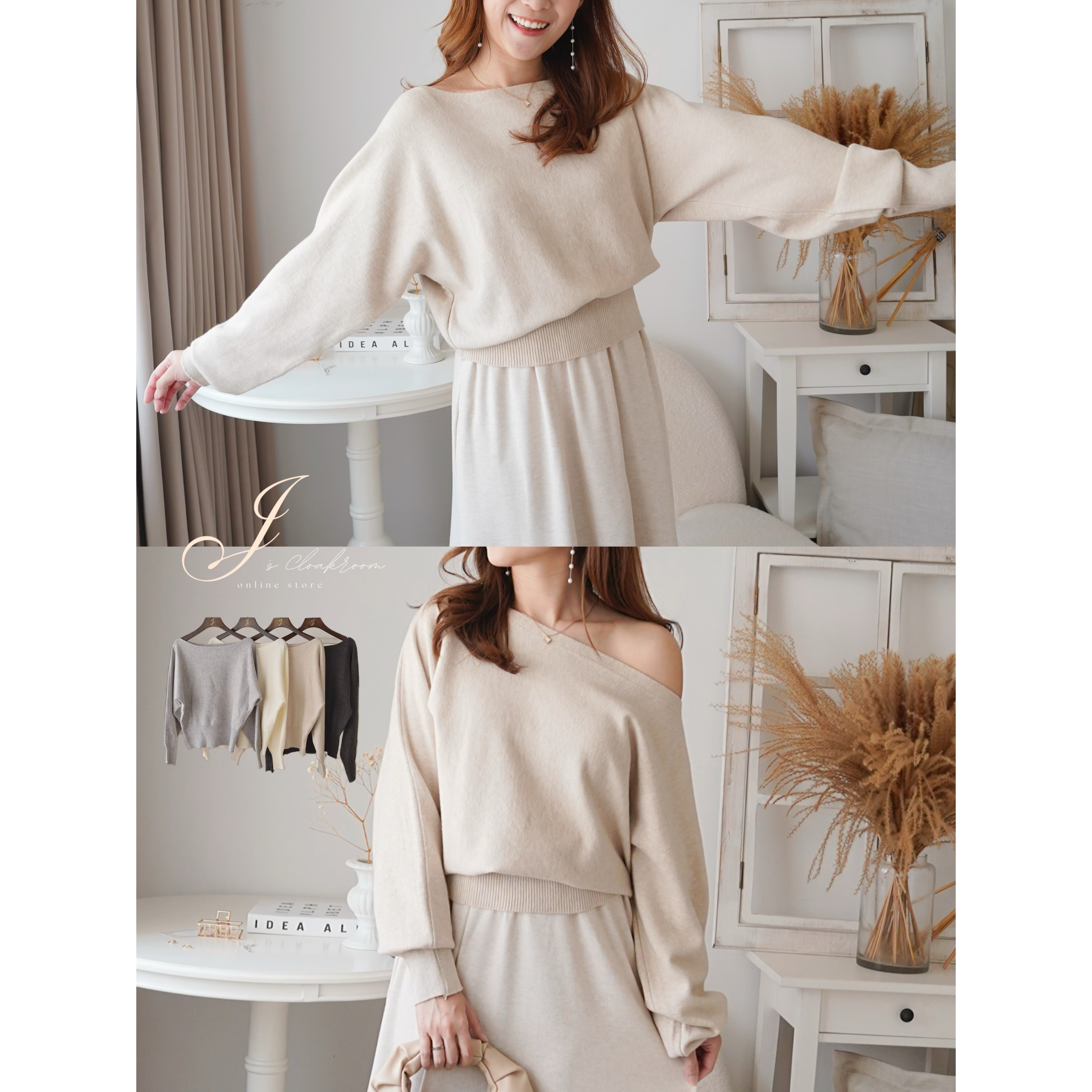 小寬領蝙蝠袖2-WAY上衣(KR)[燕麥色]662710