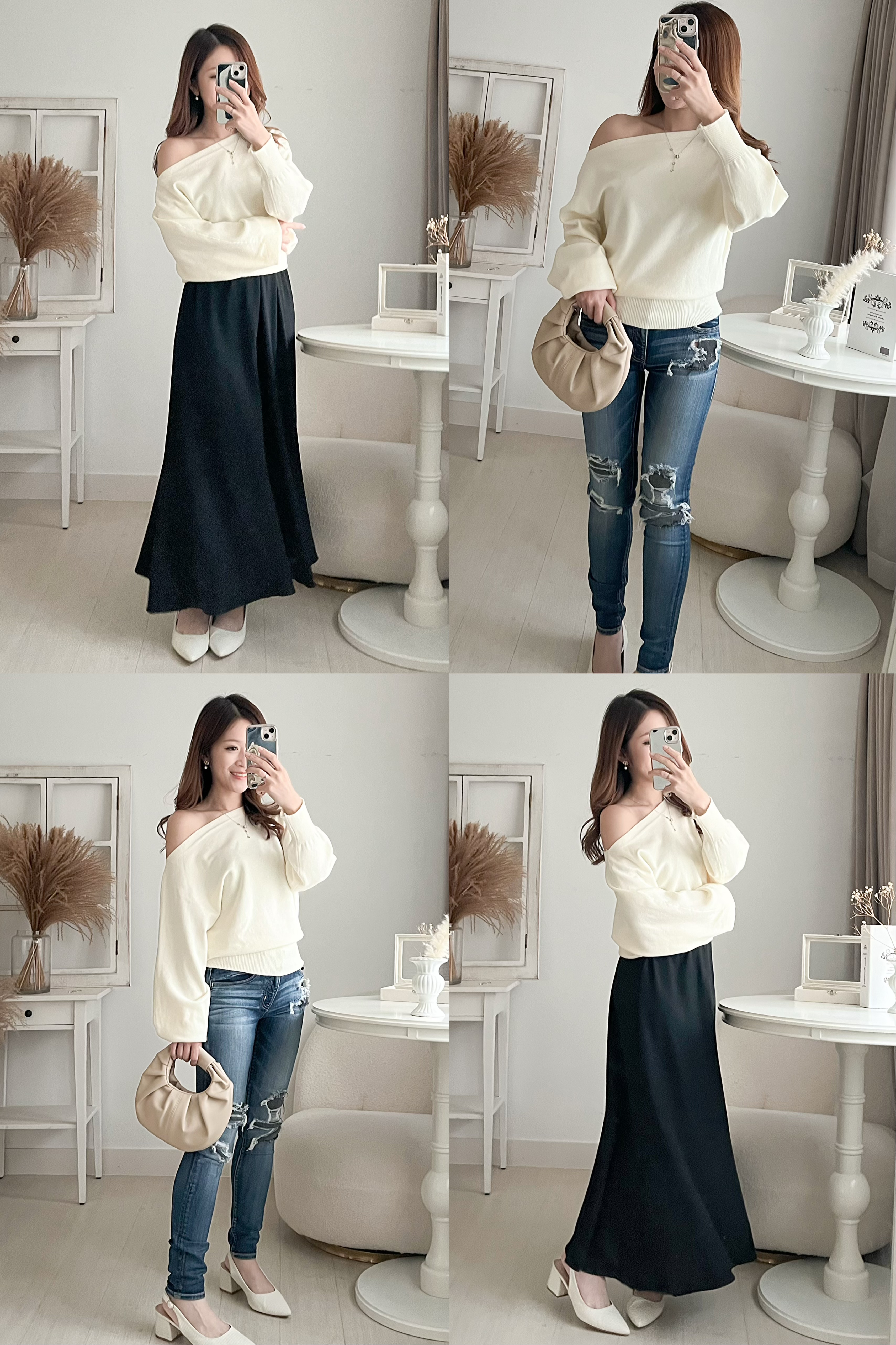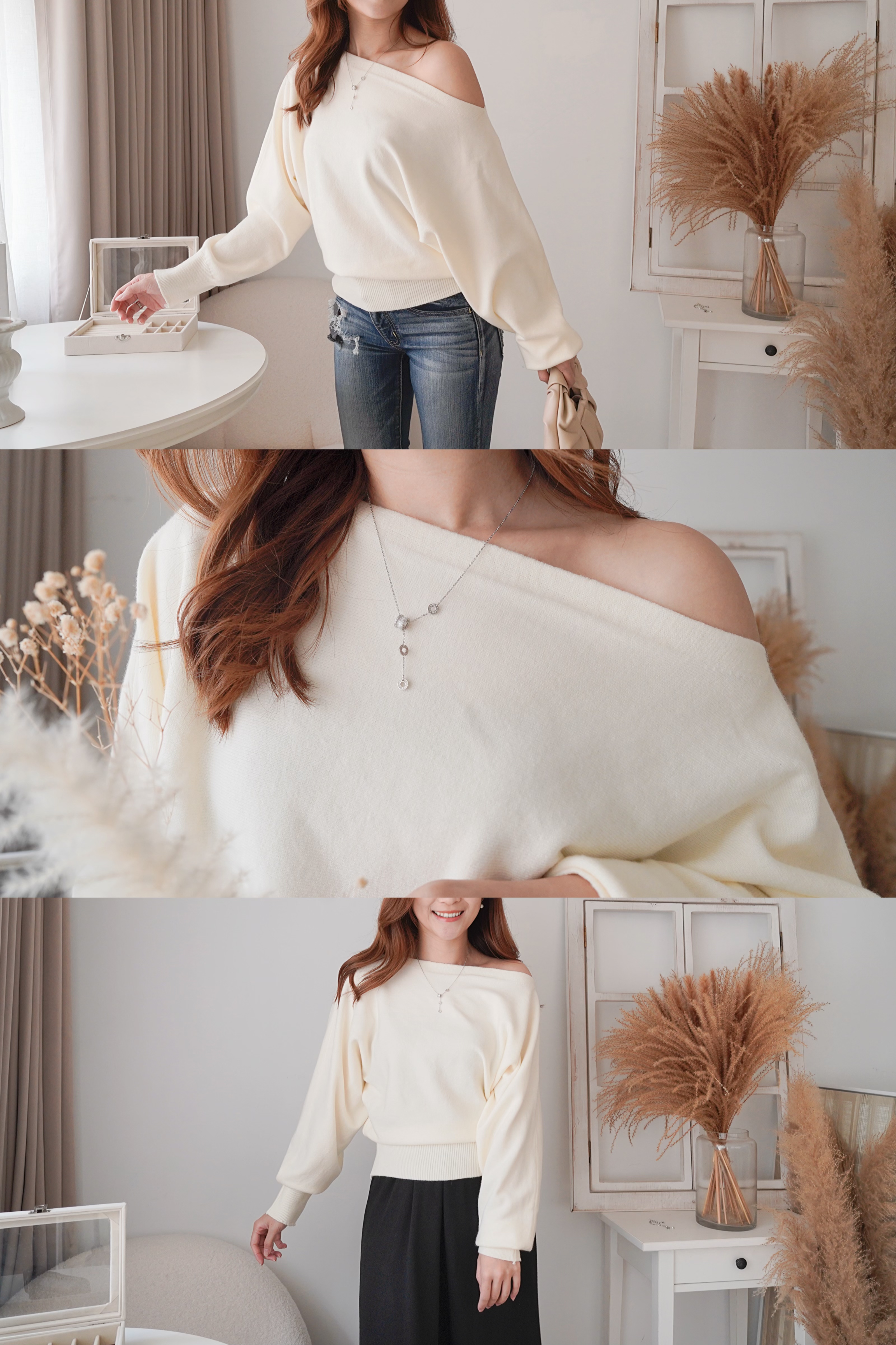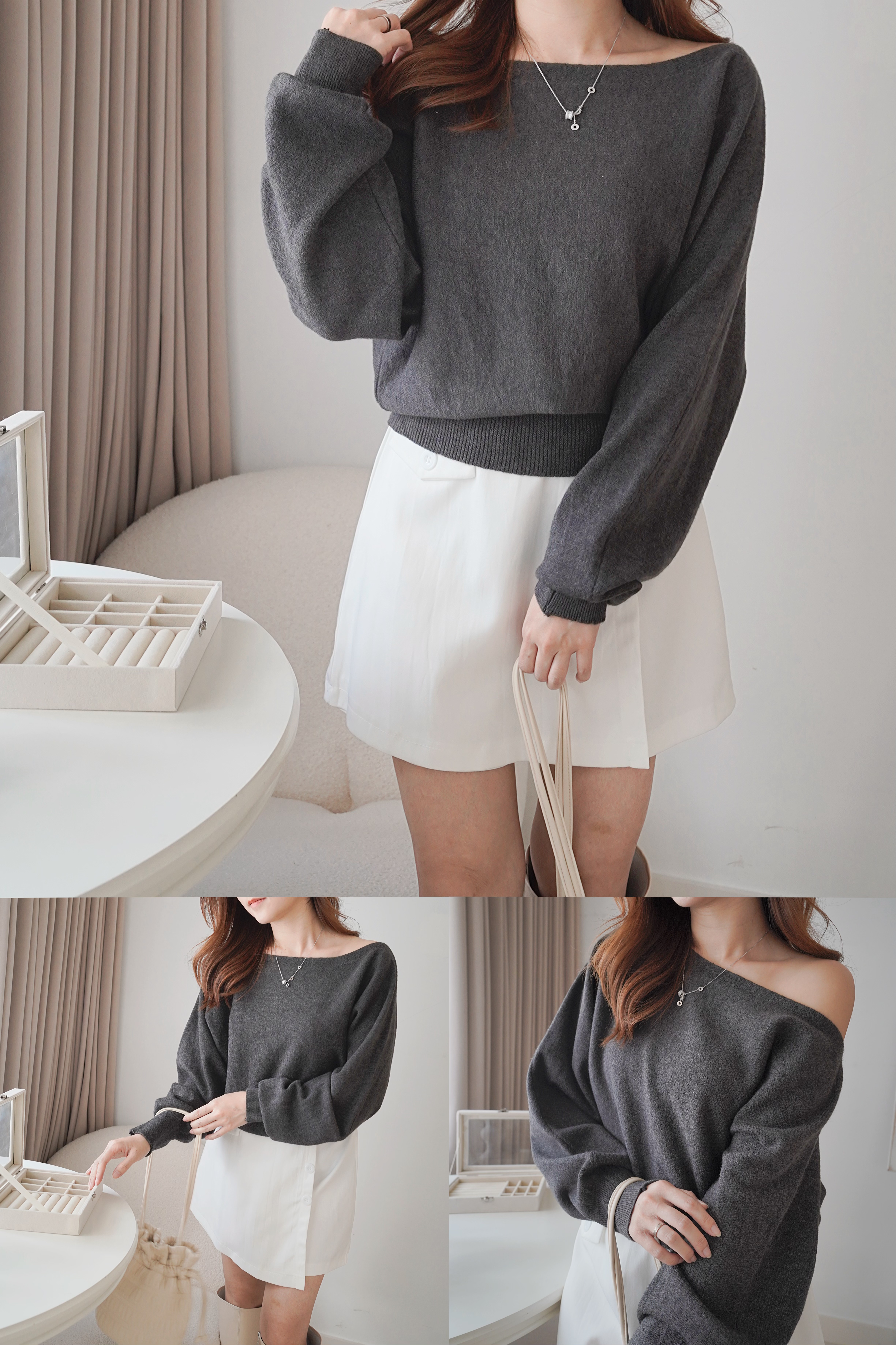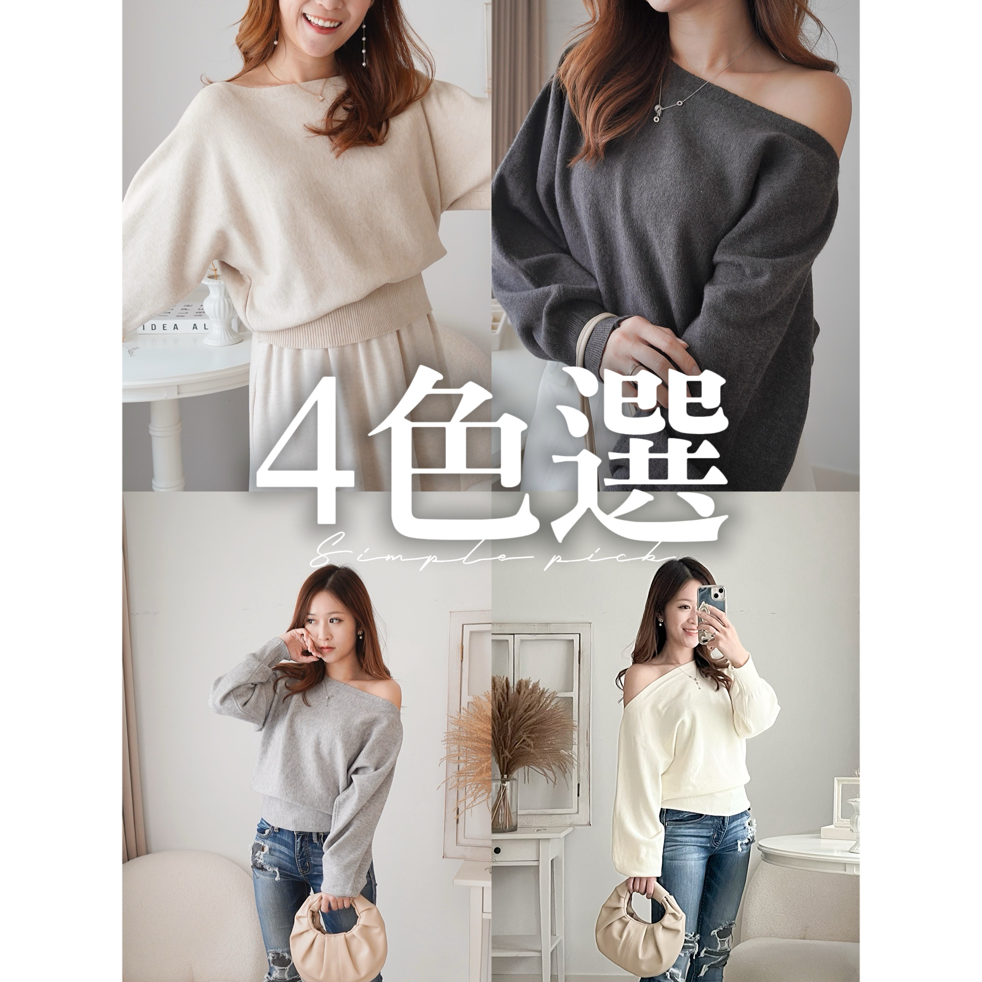 小寬領蝙蝠袖2-WAY上衣(KR)4色 662710