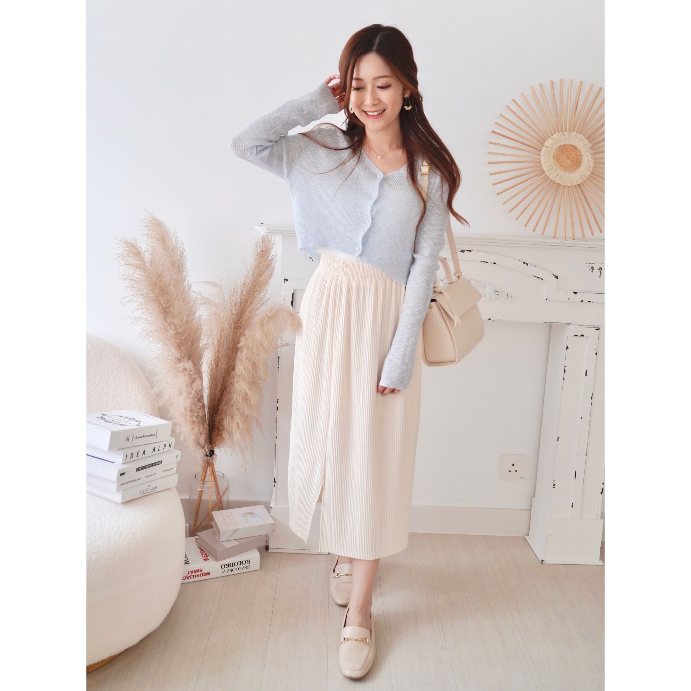 小開叉細百褶直身裙 (KR)[荳奶色]100878