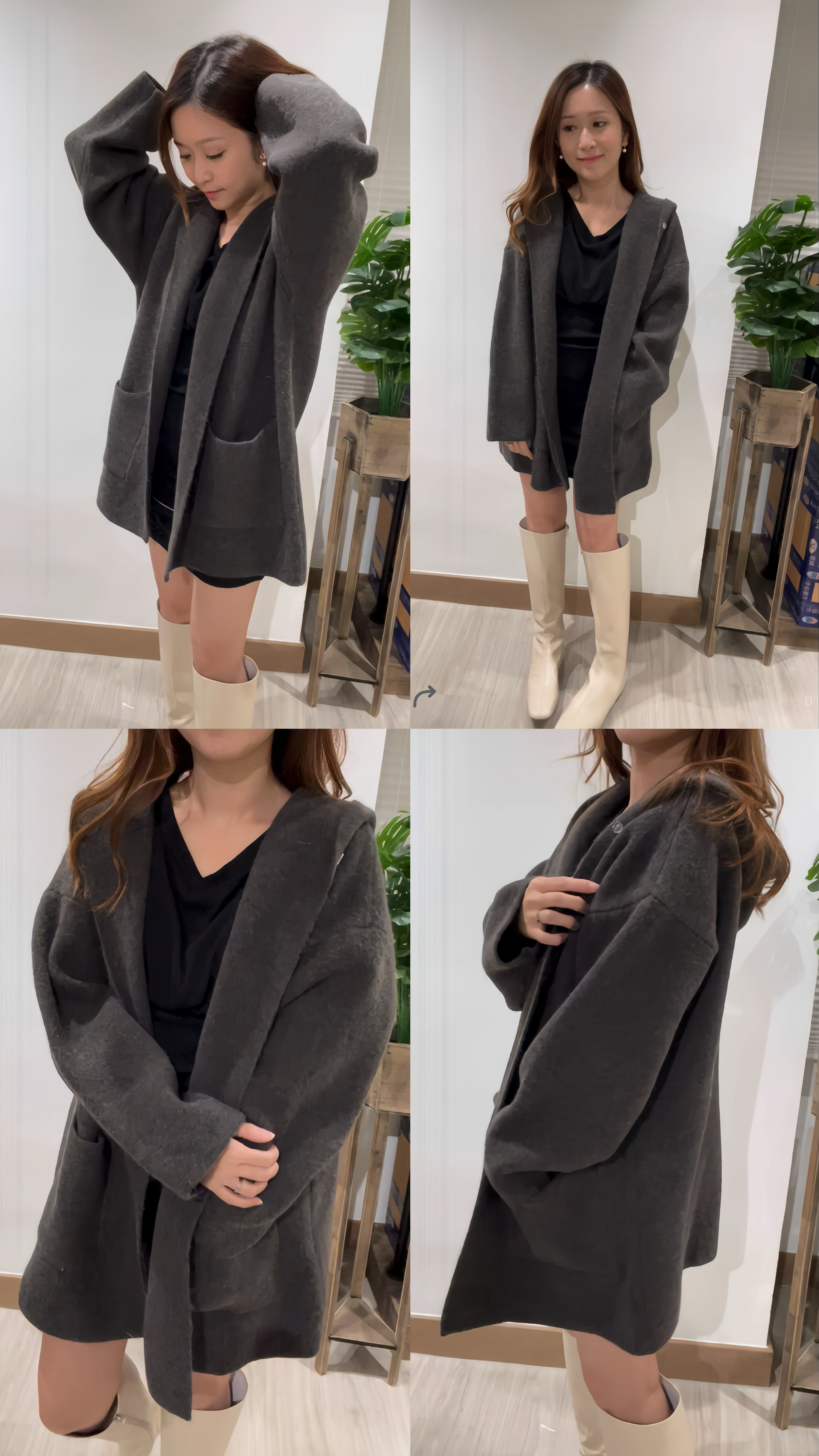 毛毛可拆☑️雙口袋毛冷外套(KR)[灰色]