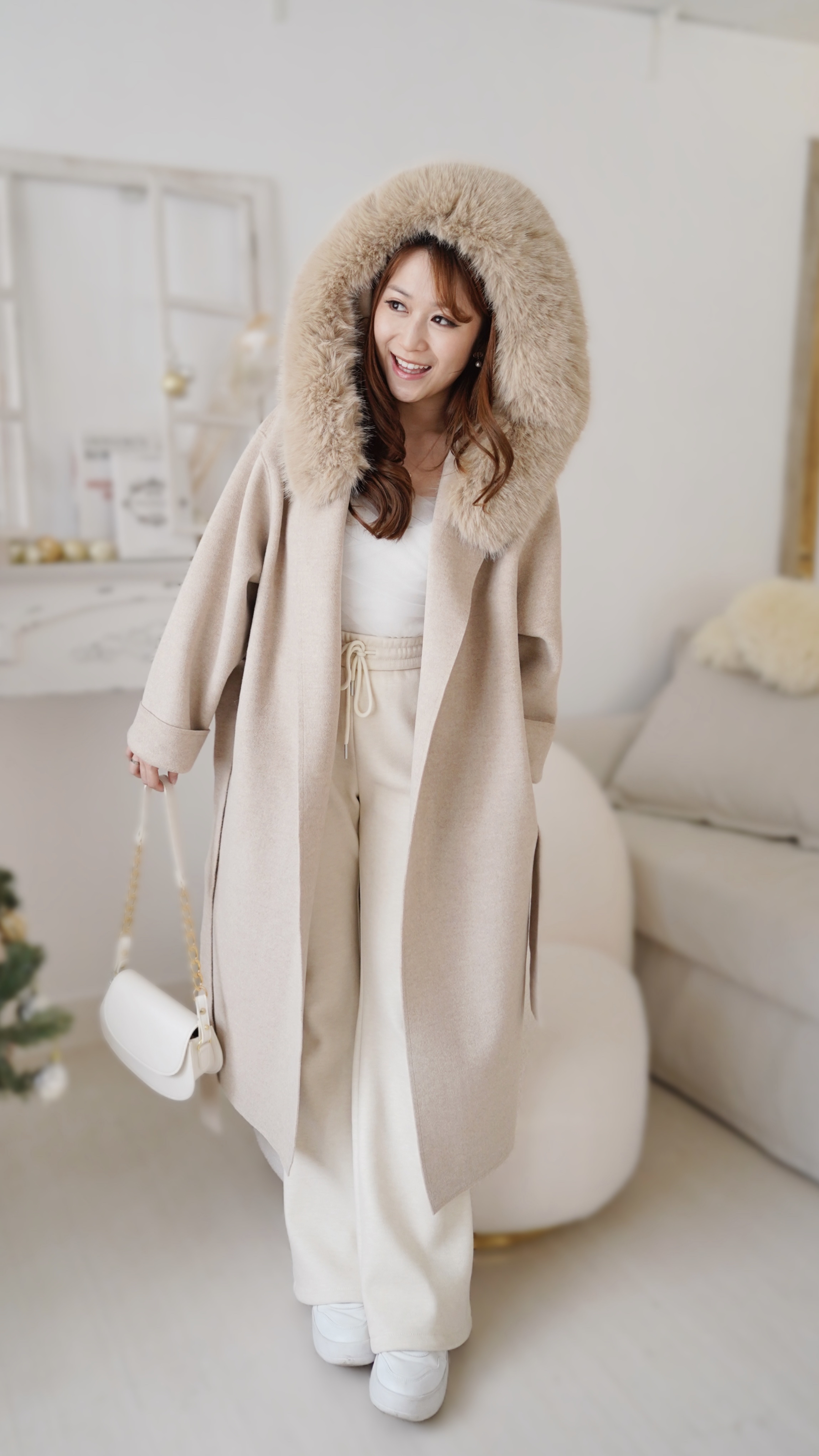 毛毛可拆❄️長版·雪地羊絨大褸(KR)[杏色]115380
